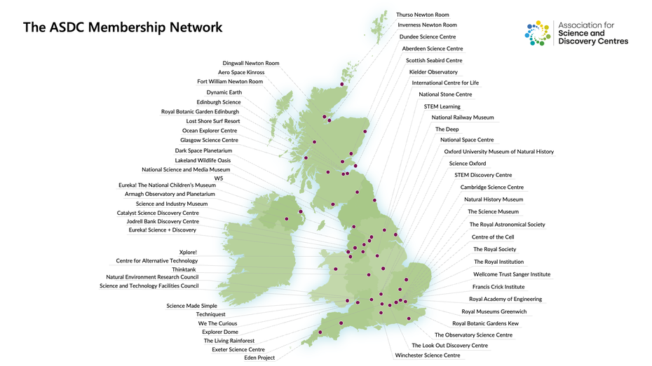 The Association for Science and Discovery Centres (ASDC) is the vibrant charity that brings together the UK’s major science engagement organisations to play a strategic role in the nation’s engagement with science. Within our network are over 60 of the nation’s largest publicly accessible science and discovery centres, science museums and scientific bodies.